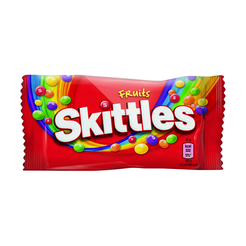 “Taste the Rainbow” with Skittles, the colorful bite-sized candies that offer a symphony of fruit flavors. Each Skittle has a crisp candy shell and a chewy center, delivering a tangy and sweet punch. From the original lime, lemon, strawberry, grape, and orange mix to wild berry and sour varieties, Skittles are perfect for snacking, sharing at parties, or adding a pop of color to your dessert table. Their fun, vibrant nature makes them a global favorite for kids and adults alike.
